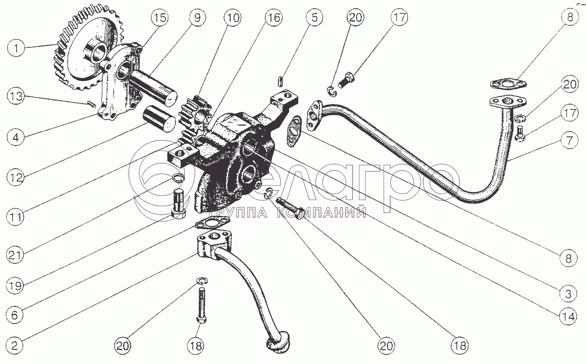 Каталог запасных частей к технике: ММЗ Д-245S2. Приемник масляного насоса и масляный насос