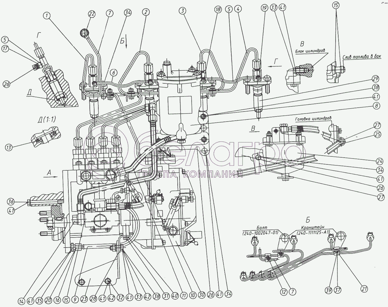 Каталог запасных частей к технике: ММЗ Д-245S2. Топливные трубопроводы и установка топливной аппаратуры