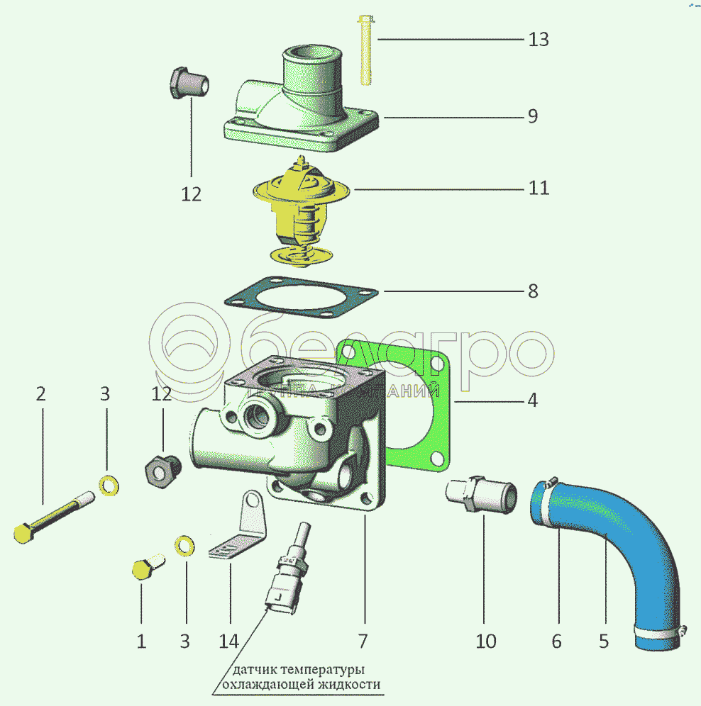 Каталог запасных частей к технике: ММЗ Д-245S3A. Установка корпуса термостата
