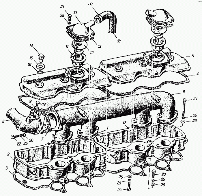 Каталог запасных частей к технике: ММЗ Д-260.1. Крышки головок цилиндров, коллектор и сапуны