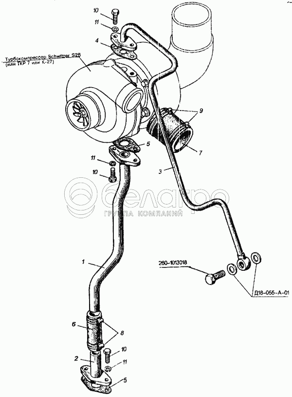 Каталог запасных частей к технике: ММЗ Д-260.1. Маслопроводы турбокомпрессора