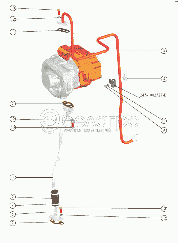 Каталог запасных частей к технике: ММЗ Д–260.1(2,9). Маслопроводы турбокомпрессора
