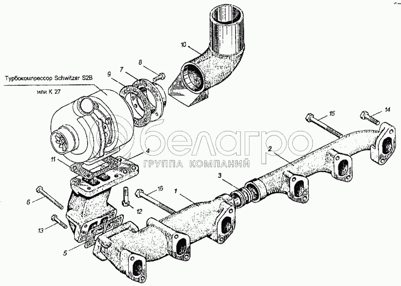 Каталог запасных частей к технике: ММЗ Д-260.4. Газопровод двигателя