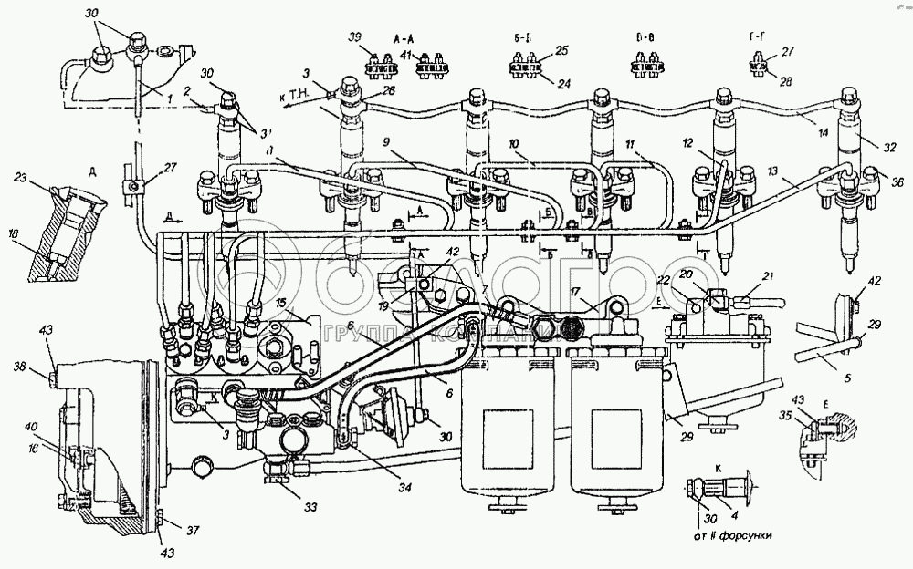 Каталог запасных частей к технике: ММЗ Д-260.4. Топливные трубопроводы и установка топливной аппаратуры