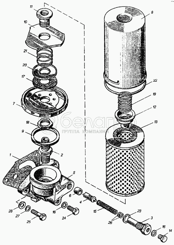 Каталог запасных частей к технике: ММЗ Д-260.4. Установка масляного фильтра