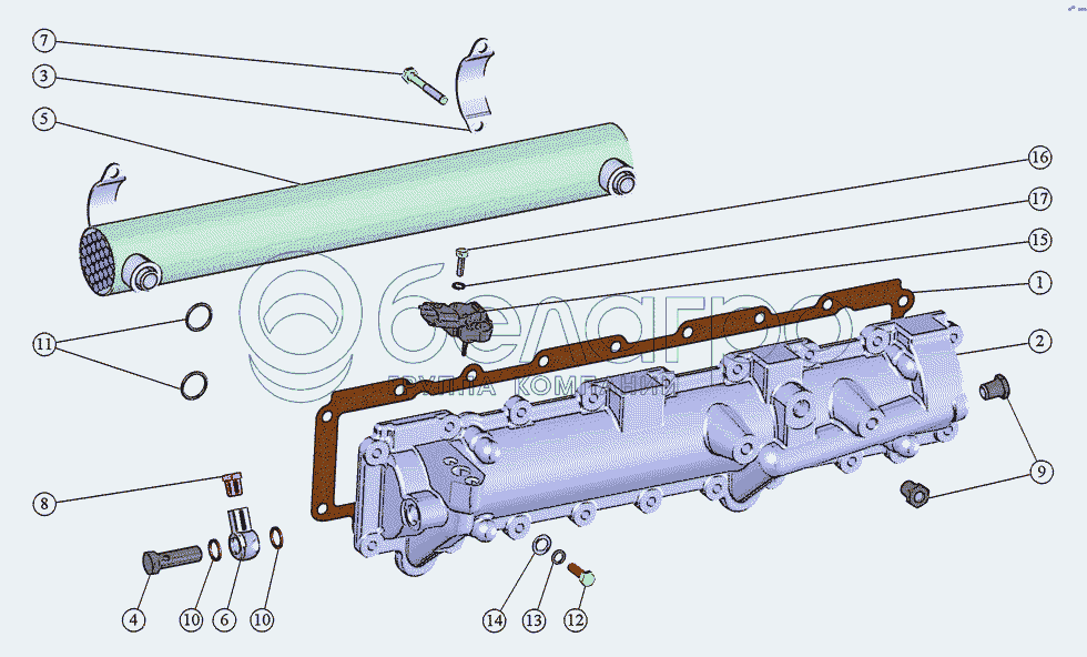 Каталог запасных частей к технике: ММЗ Д-260.5Е3 / Д-260.12Е3. Установка теплообменника