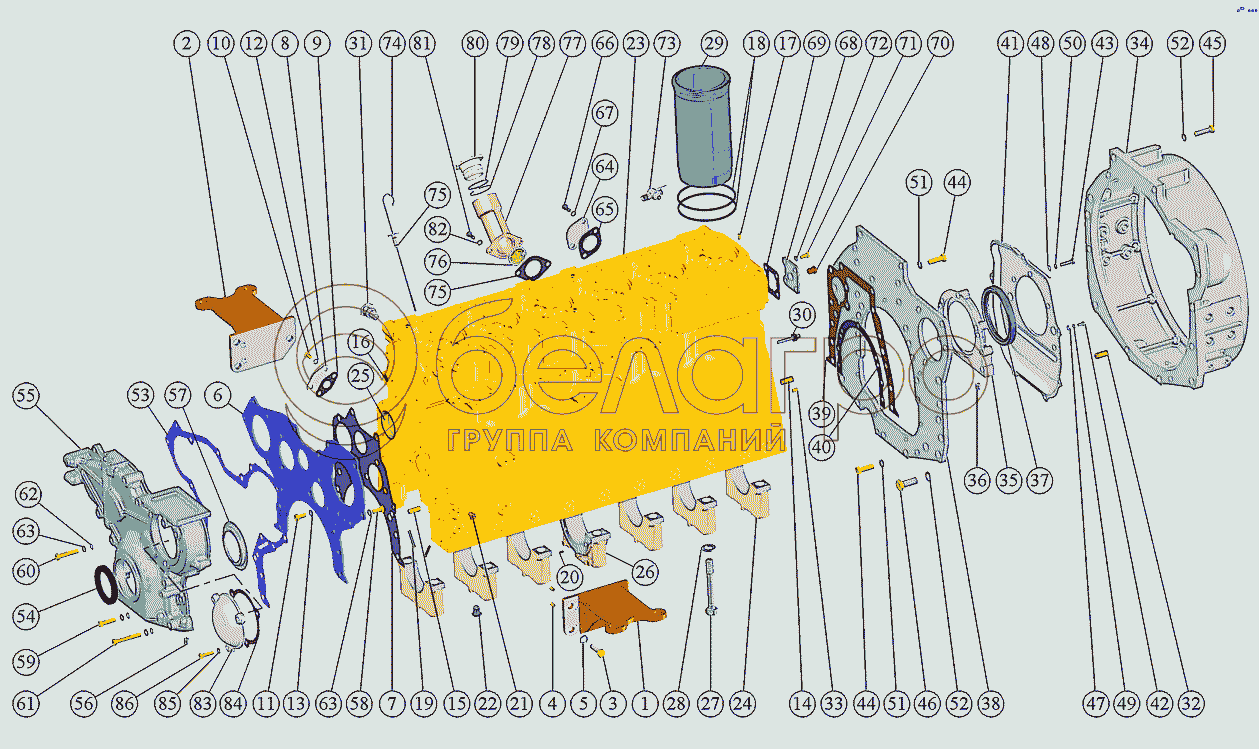 Каталог запасных частей к технике: ММЗ Д-260.7C. Блок цилиндров