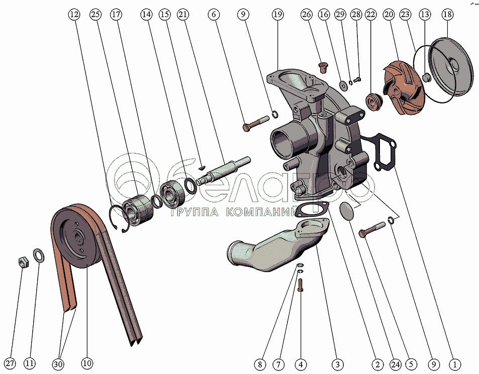 Каталог запасных частей к технике: ММЗ Д-260.7C. Установка водяного насоса