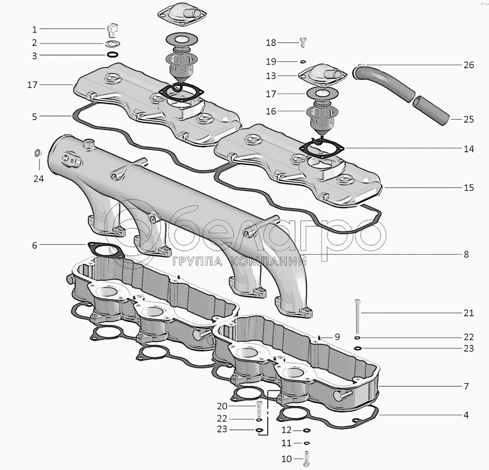 Каталог запасных частей к технике: ММЗ Д-260S3A. Крышки головок цилиндров, коллектор и сапуны