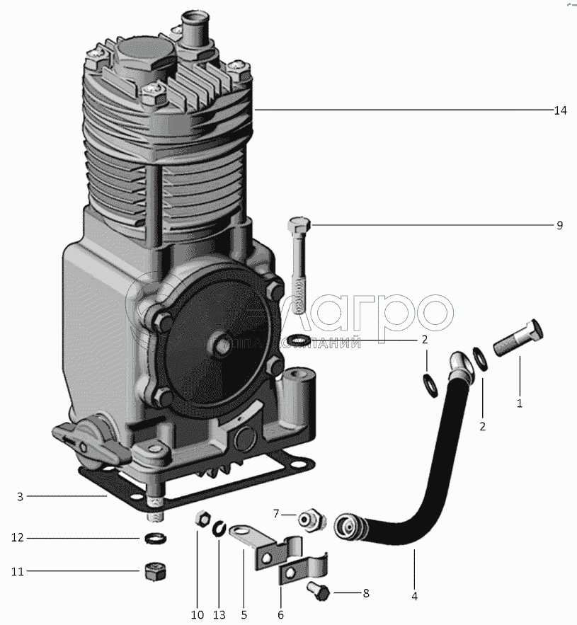 Каталог запасных частей к технике: ММЗ Д-260S3A. Установка компрессора