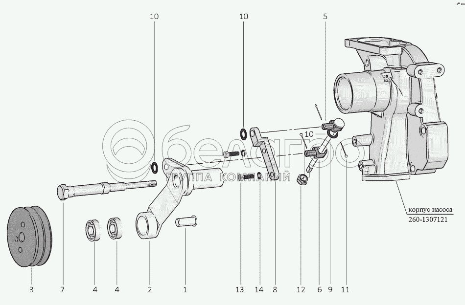Каталог запасных частей к технике: ММЗ Д-260S3A. Установка натяжителя