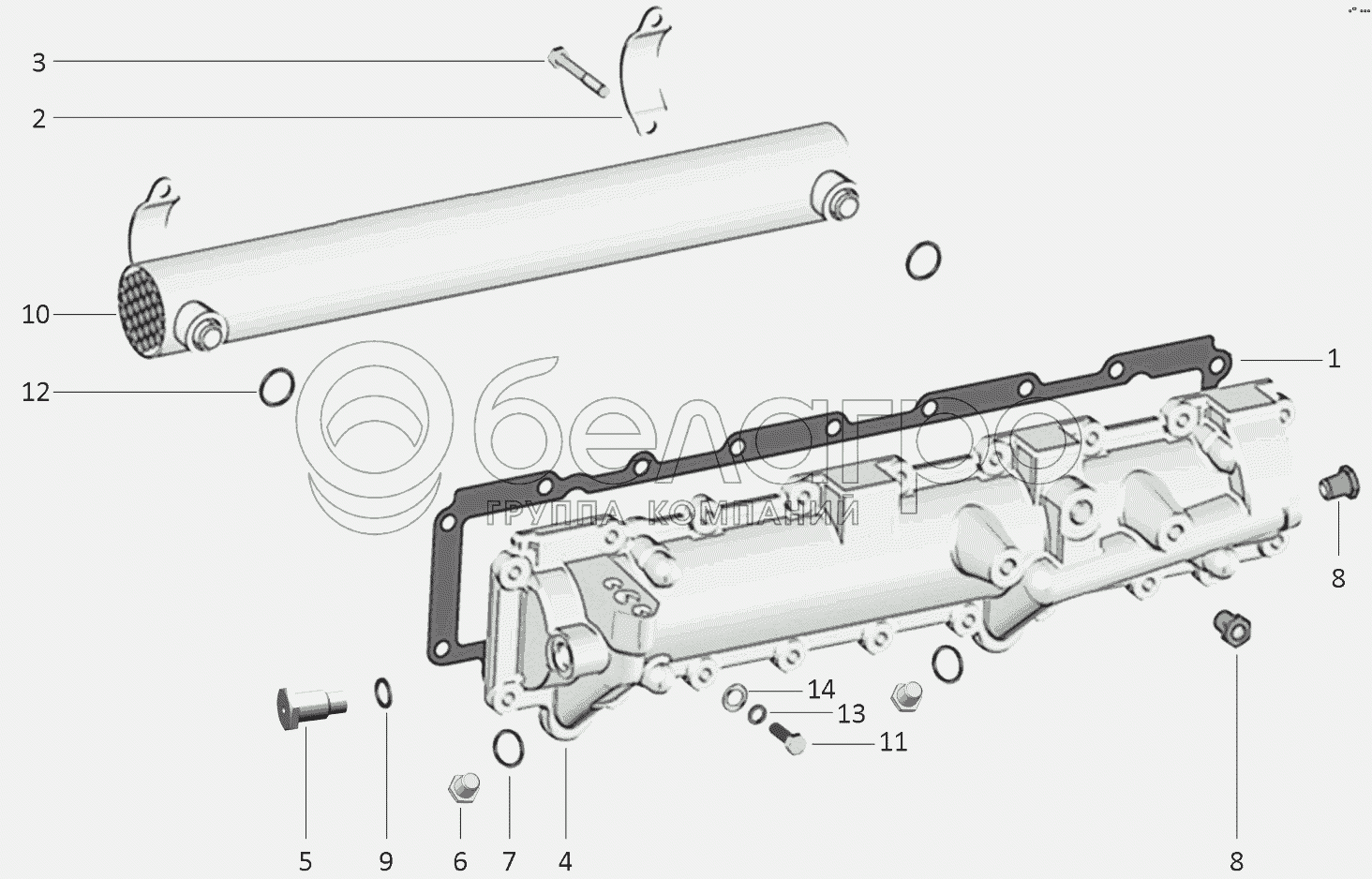 Каталог запасных частей к технике: ММЗ Д-260S3A. Установка теплообменника