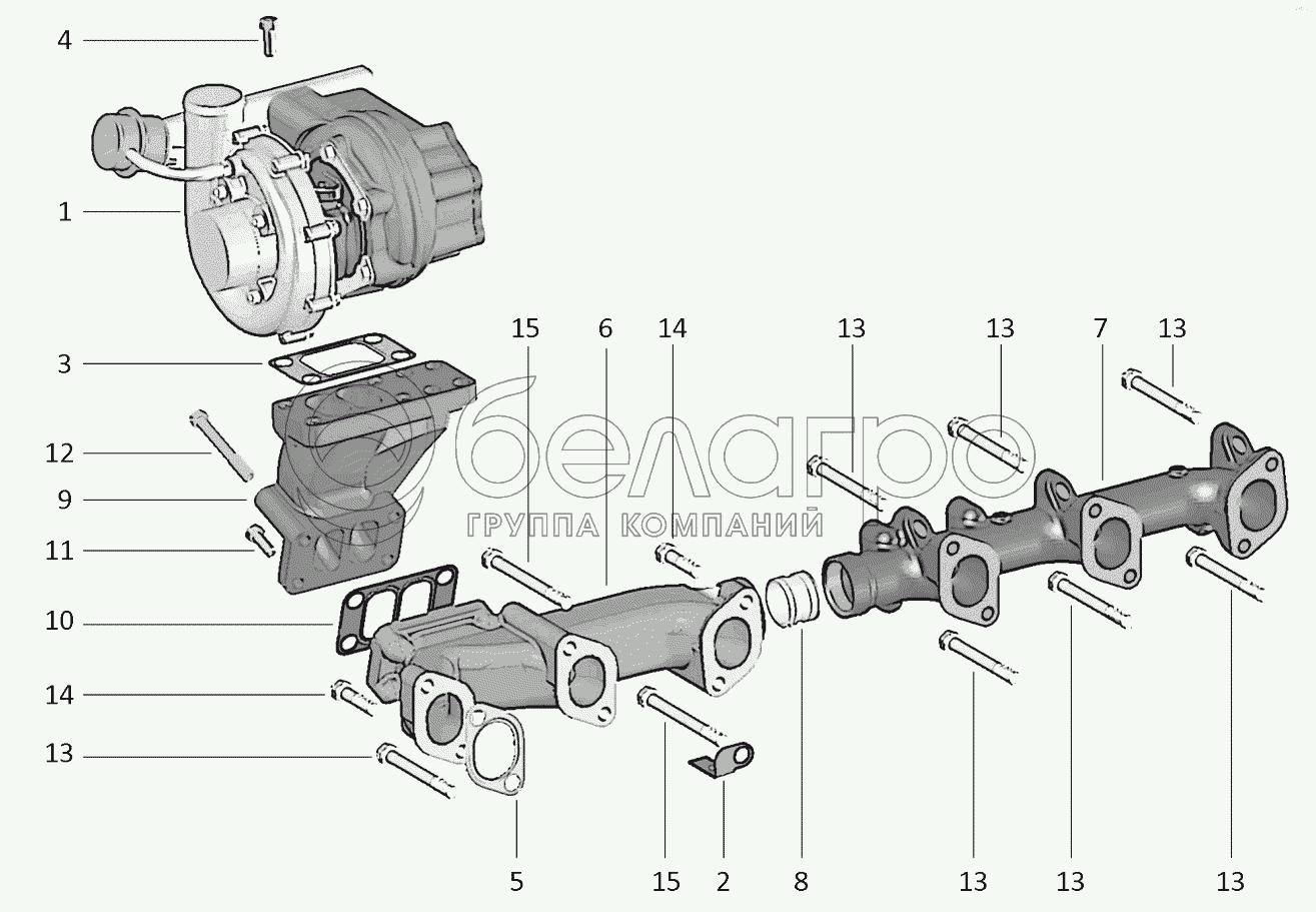 Каталог запасных частей к технике: ММЗ Д-260S3A. Установка турбокомпрессора