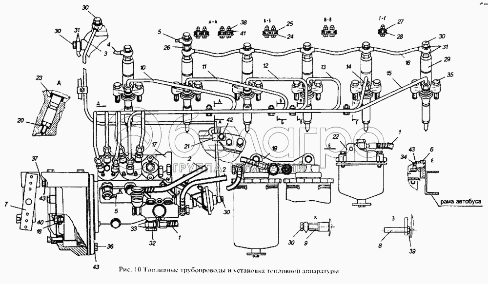 Каталог запасных частей к технике: ММЗ Д-265. Топливные трубопроводы и установка топливной аппаратуры