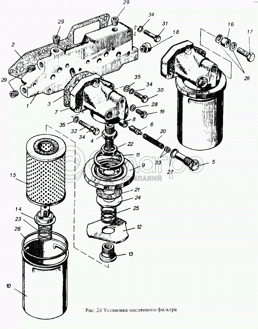 Каталог запасных частей к технике: ММЗ Д-265. Установка масляного фильтра