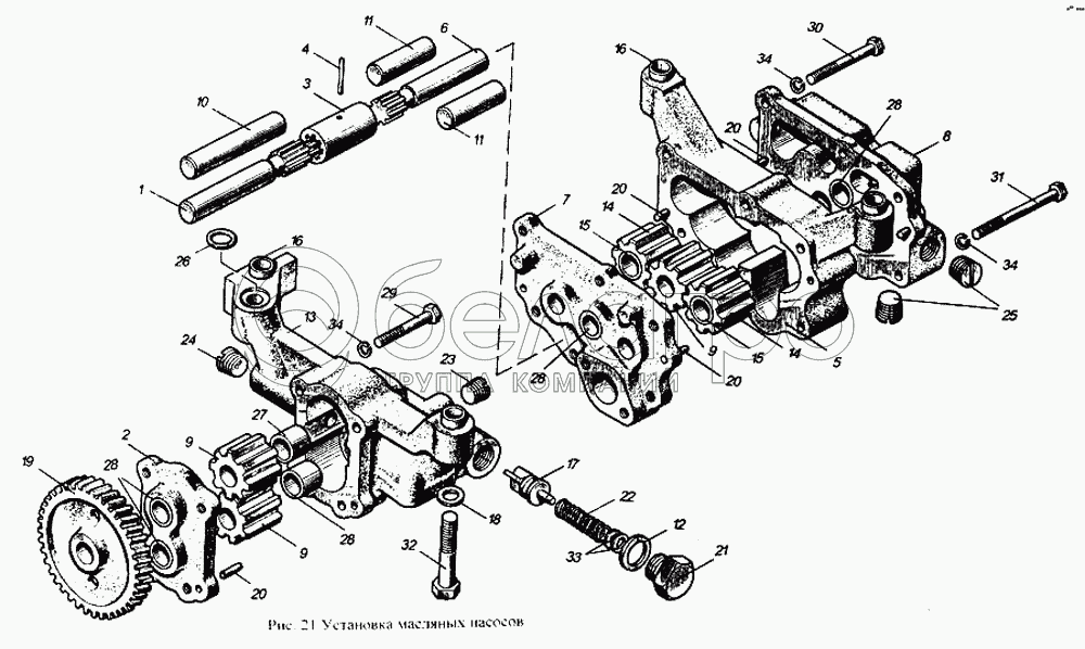 Каталог запасных частей к технике: ММЗ Д-265. Установка масляных насосов