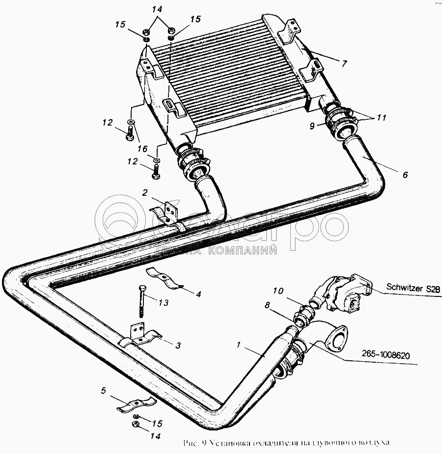 Каталог запасных частей к технике: ММЗ Д-265. Установка охладителя наддувочного воздуха