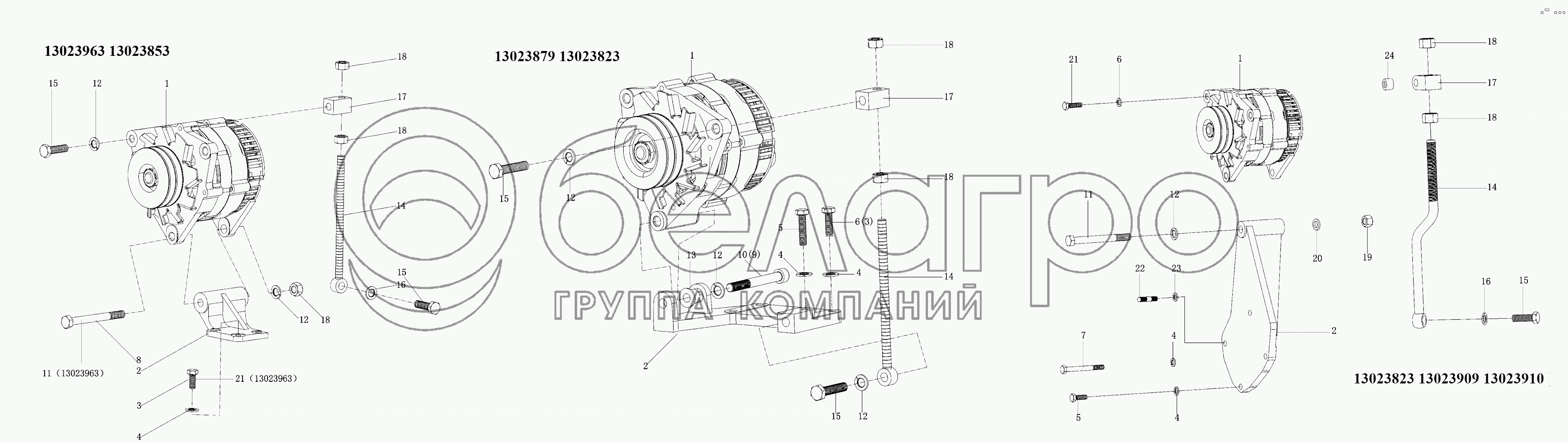 Каталог запасных частей к технике: Weichai 226B. Генератор и стойка в сборе