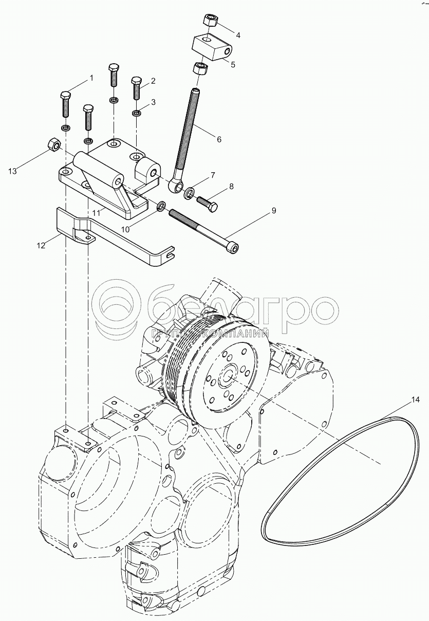 Каталог запасных частей к технике: Weichai 226B. Air conditioner compressor bracket assembly