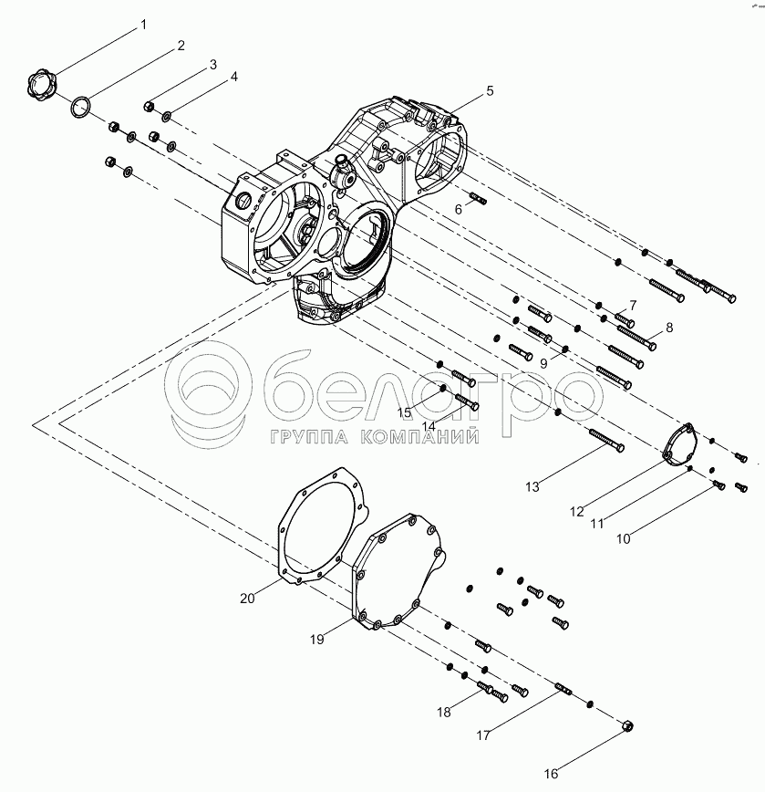 Каталог запасных частей к технике: Weichai 226B. Front wall cover assembly (gear end)