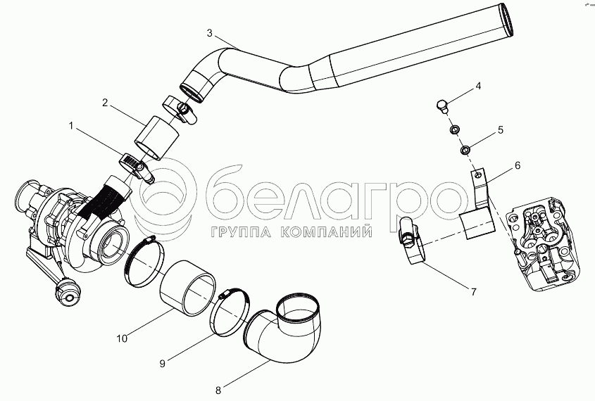 Каталог запасных частей к технике: Weichai 226B. Turbocharged air pipe assembly