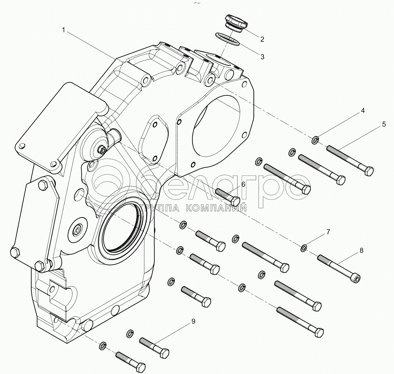 Каталог запасных частей к технике: Weichai 226B. Front wall cover assembly (gear end)