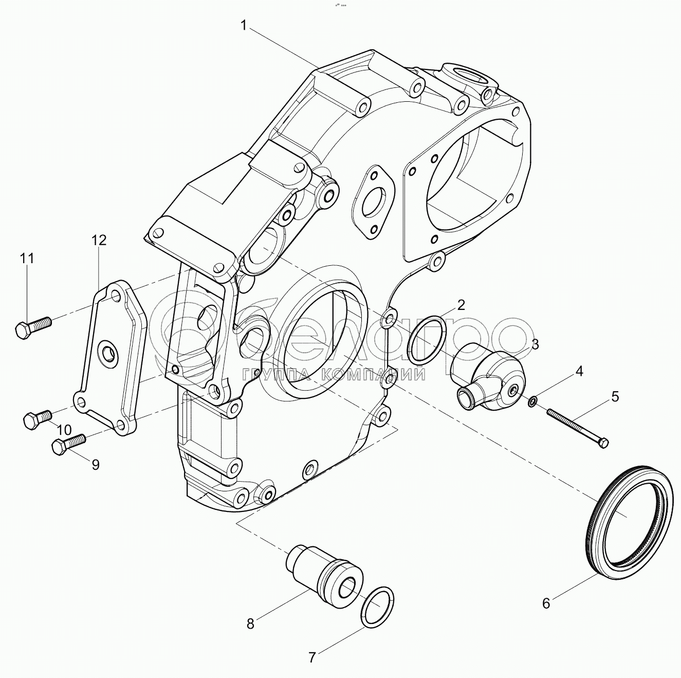 Каталог запасных частей к технике: Weichai 226B. Front wall cover subassembly (gear end)