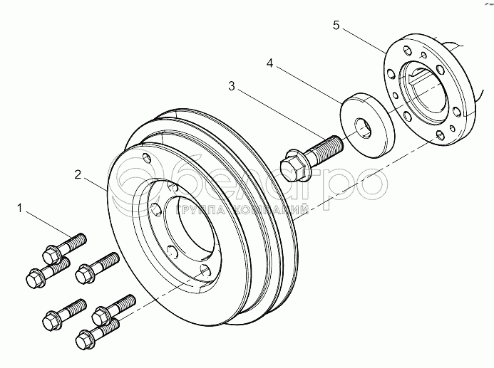 Каталог запасных частей к технике: Weichai 4M06G22. Crankshaft Pulley Group