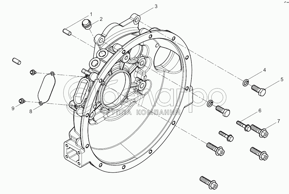 Каталог запасных частей к технике: Weichai 4M06G22. Flywheel Housing Group