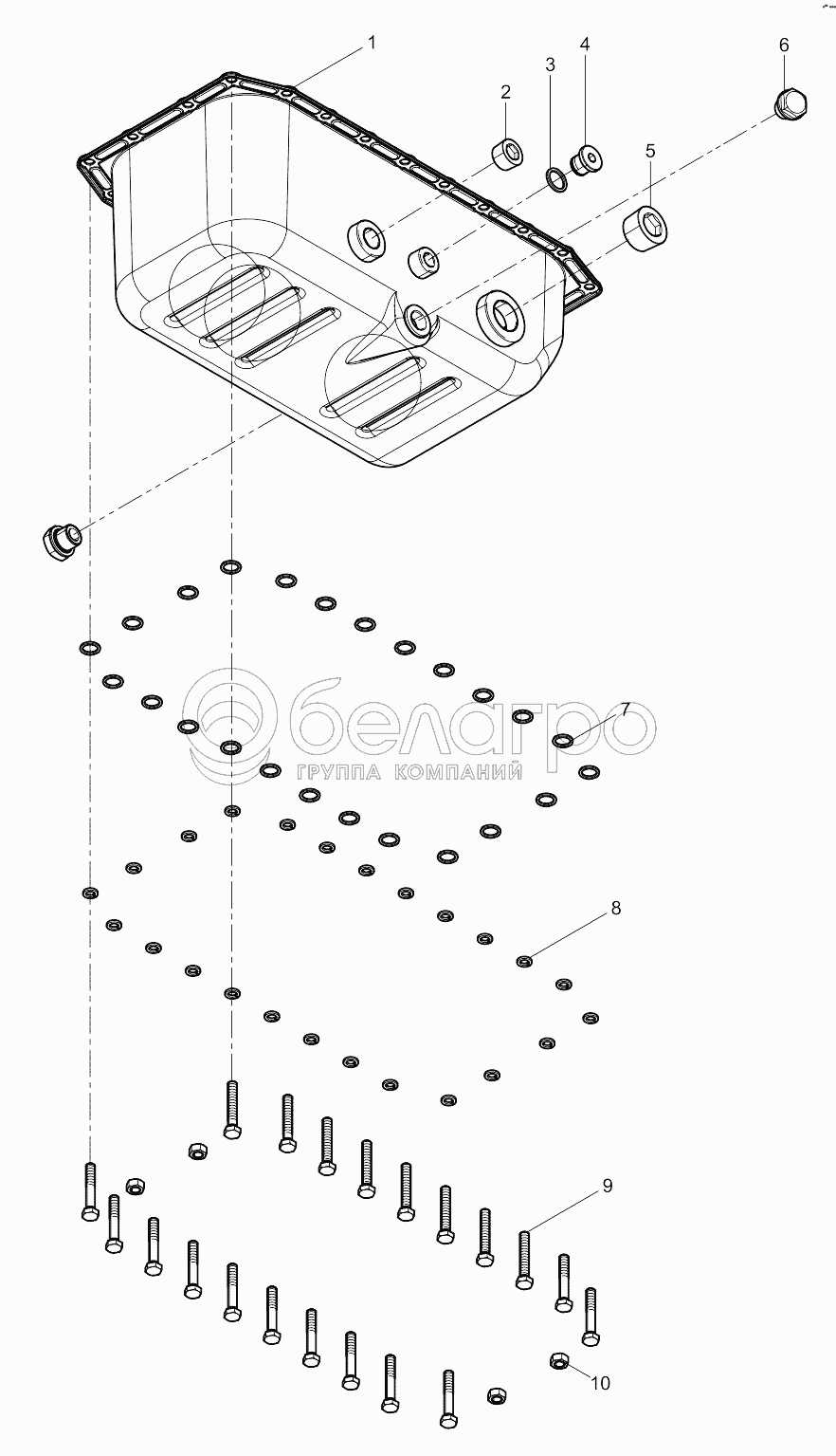 Каталог запасных частей к технике: Weichai 4M06G22. Oil Pan Group