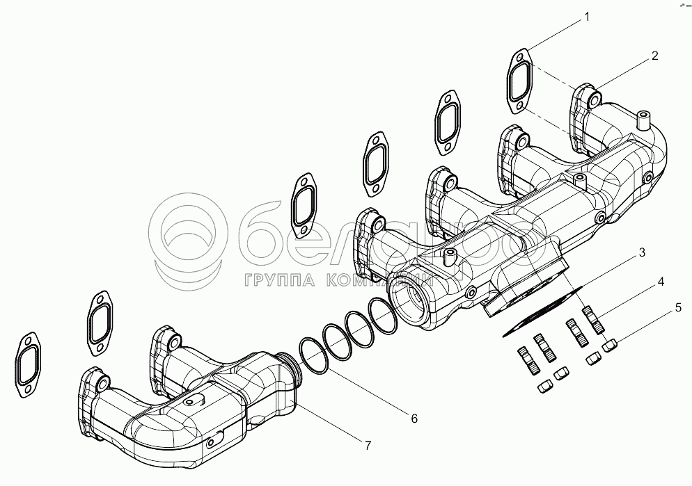 Каталог запасных частей к технике: Weichai 6M11 DHM11D0002. Exhaust Manifold Group