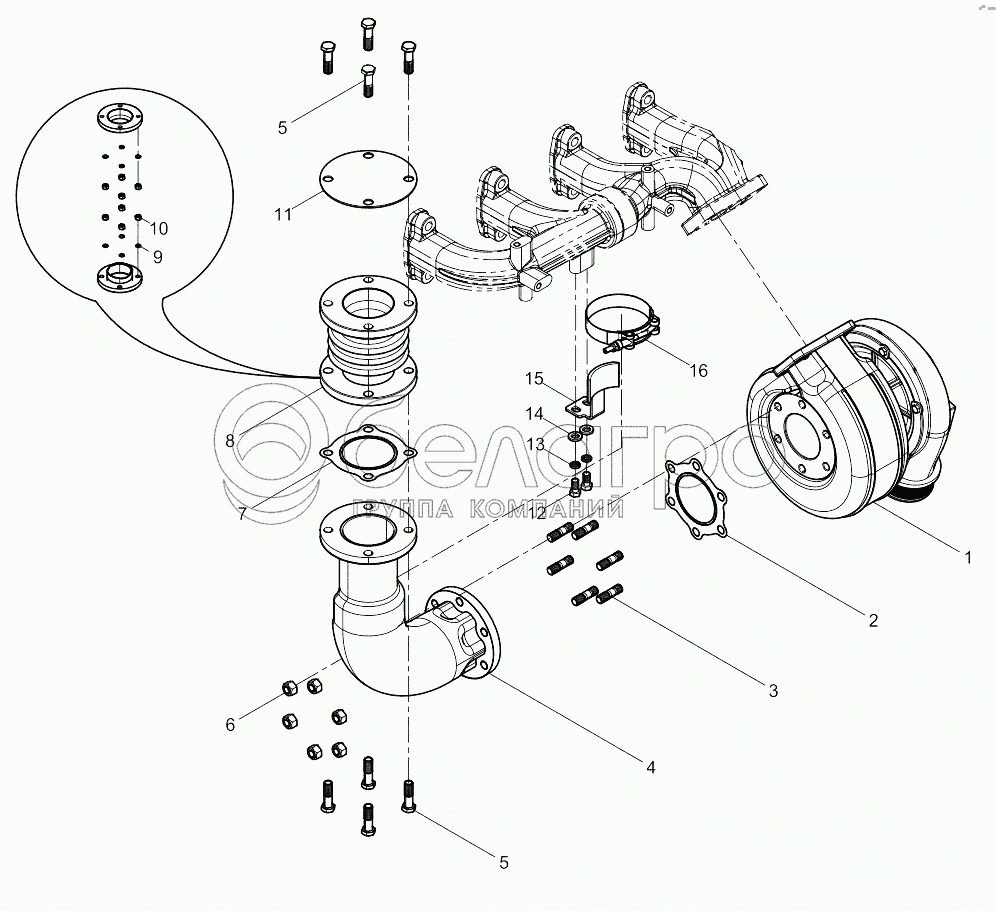 Каталог запасных частей к технике: Weichai 6M11 DHM11D0002. Turbocharger Group