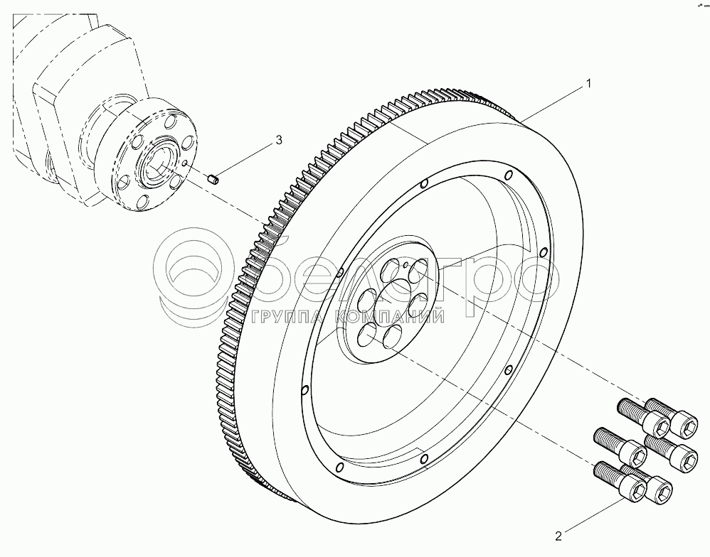 Каталог запасных частей к технике: Weichai 6M11 DHM11D0003. Flywheel Group