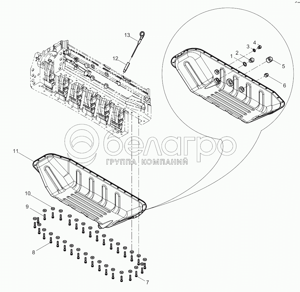 Каталог запасных частей к технике: Weichai 6M11 DHM11D0003. Oil Pan Assembly