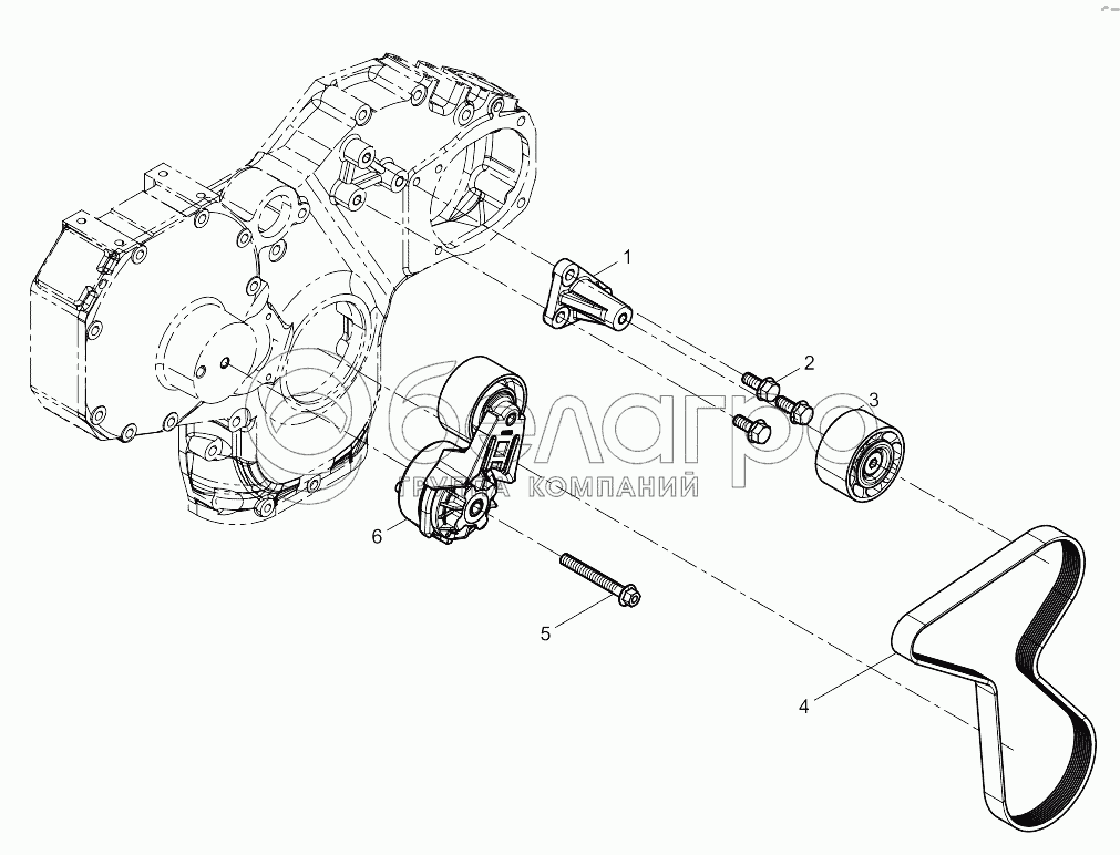 Каталог запасных частей к технике: Weichai 6M11 DHM11D0003. Tensioner And Belt Group