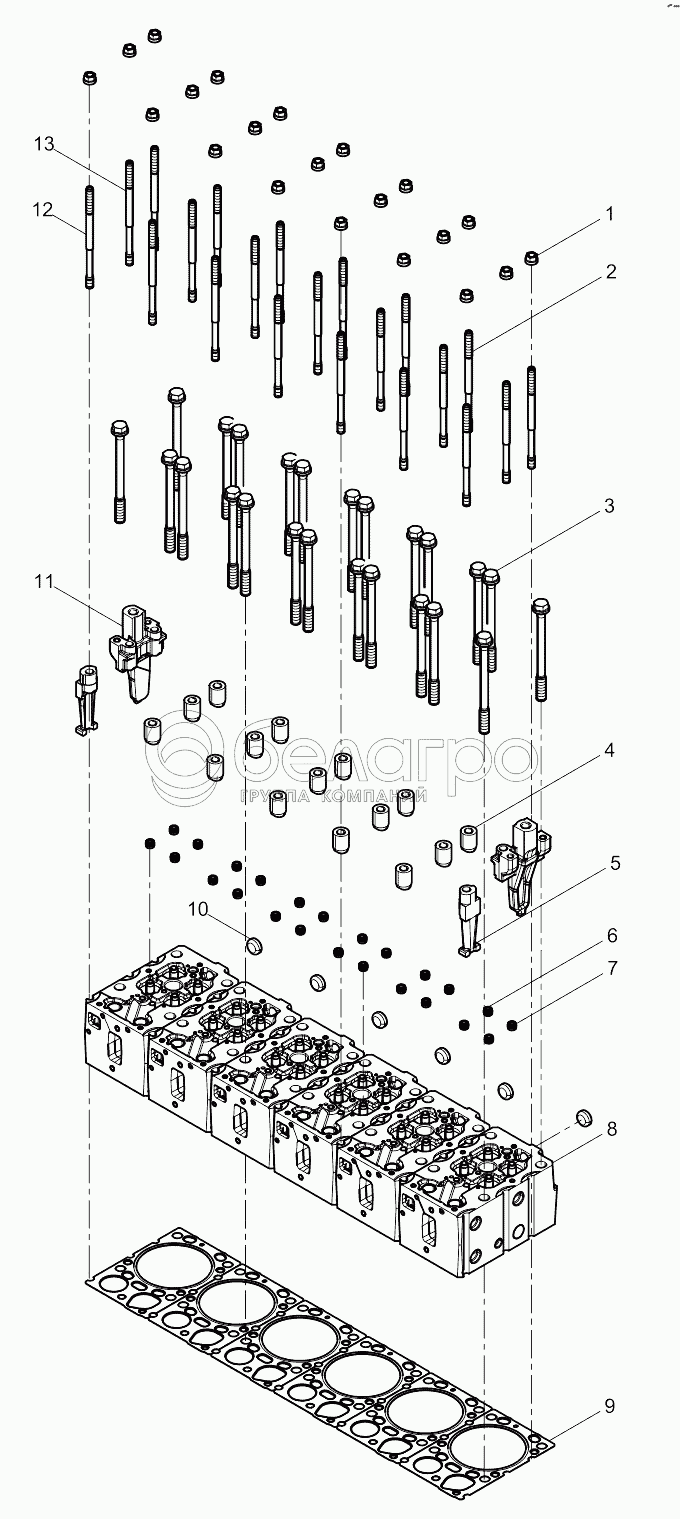 Каталог запасных частей к технике: Weichai 6M11 DHM16D0001. Cylinder Head Group