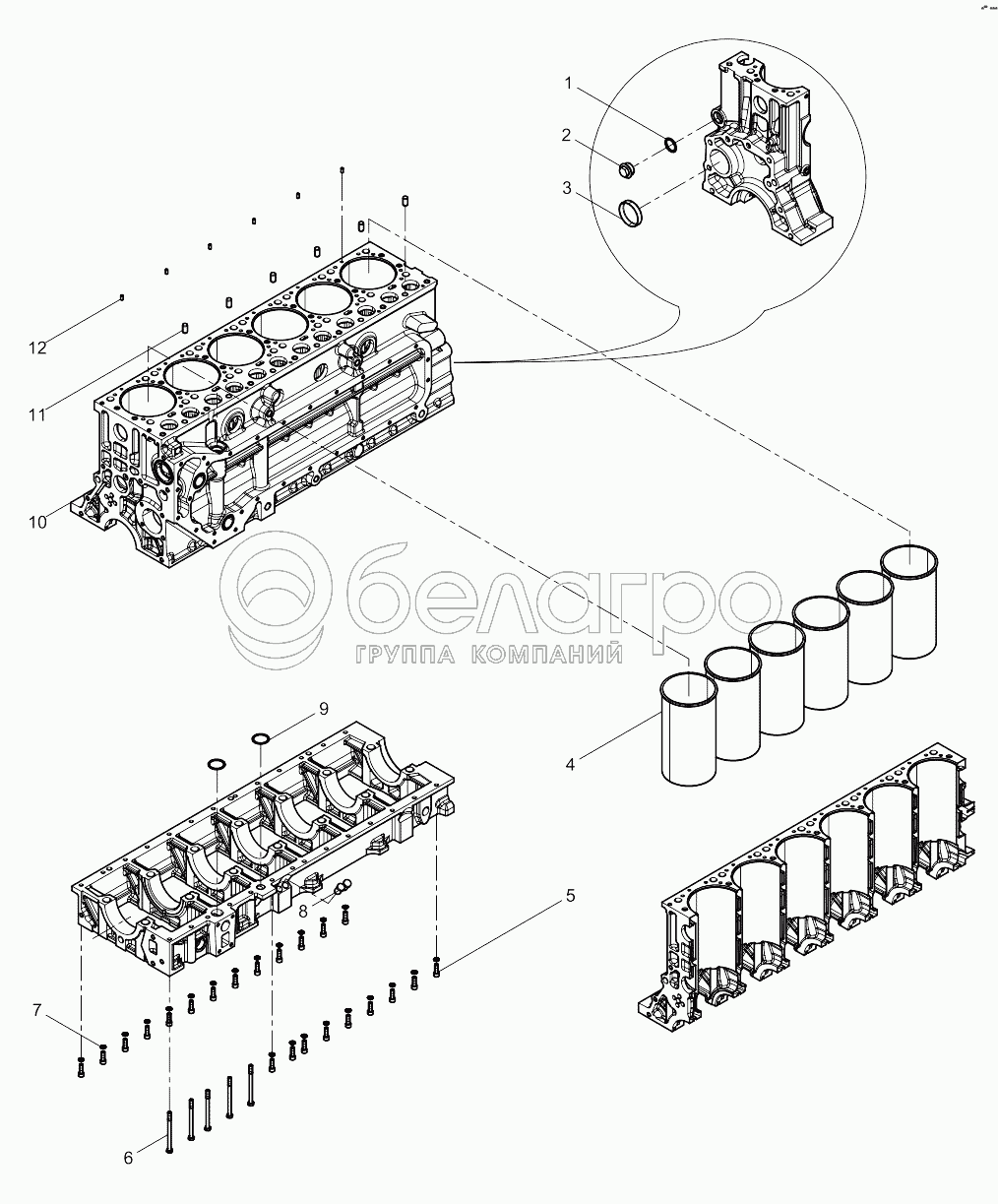 Каталог запасных частей к технике: Weichai 6M11 DHM16D0001. Engine Block Group