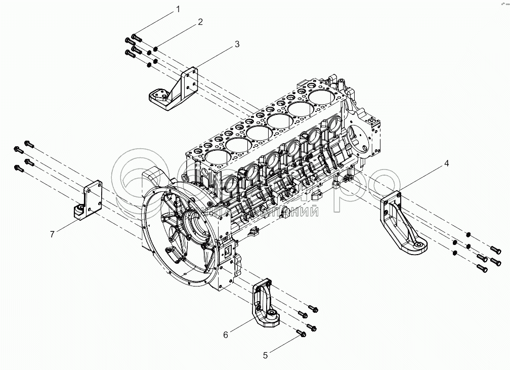 Каталог запасных частей к технике: Weichai 6M11 DHM16D0001. Engine Bracket Group