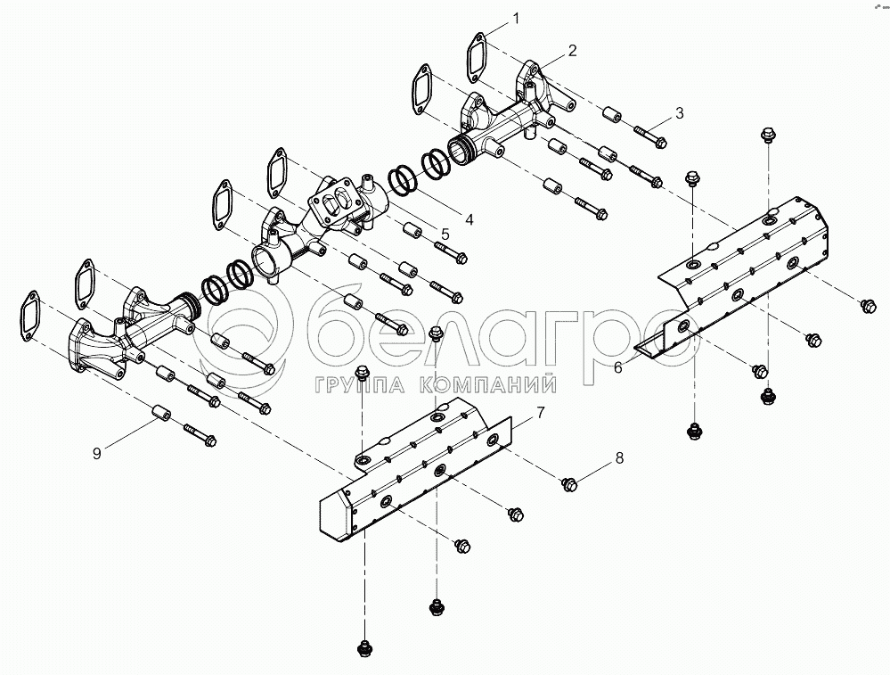 Каталог запасных частей к технике: Weichai 6M11 DHM16D0001. Exhaust Manifold Group