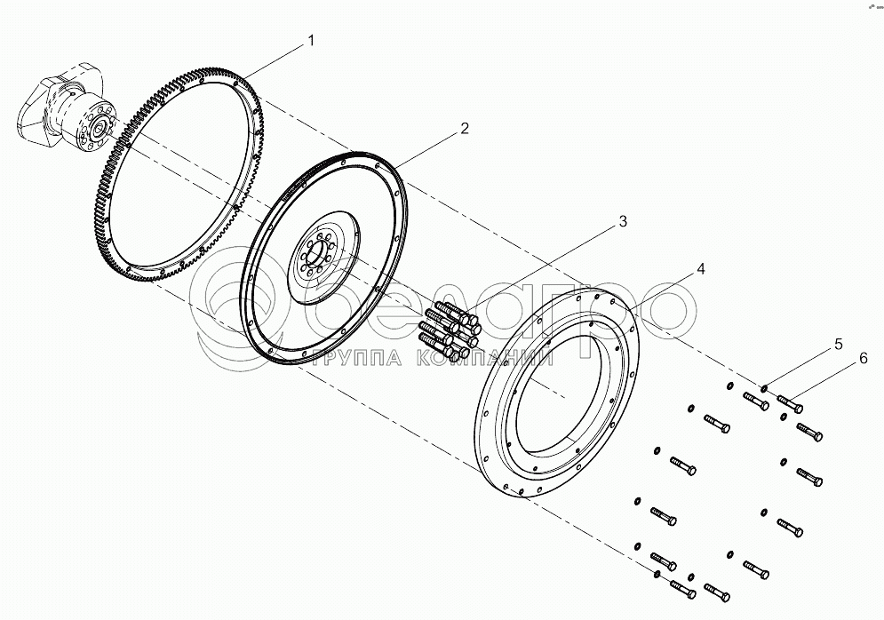 Каталог запасных частей к технике: Weichai 6M11 DHM16D0001. Flywheel Group