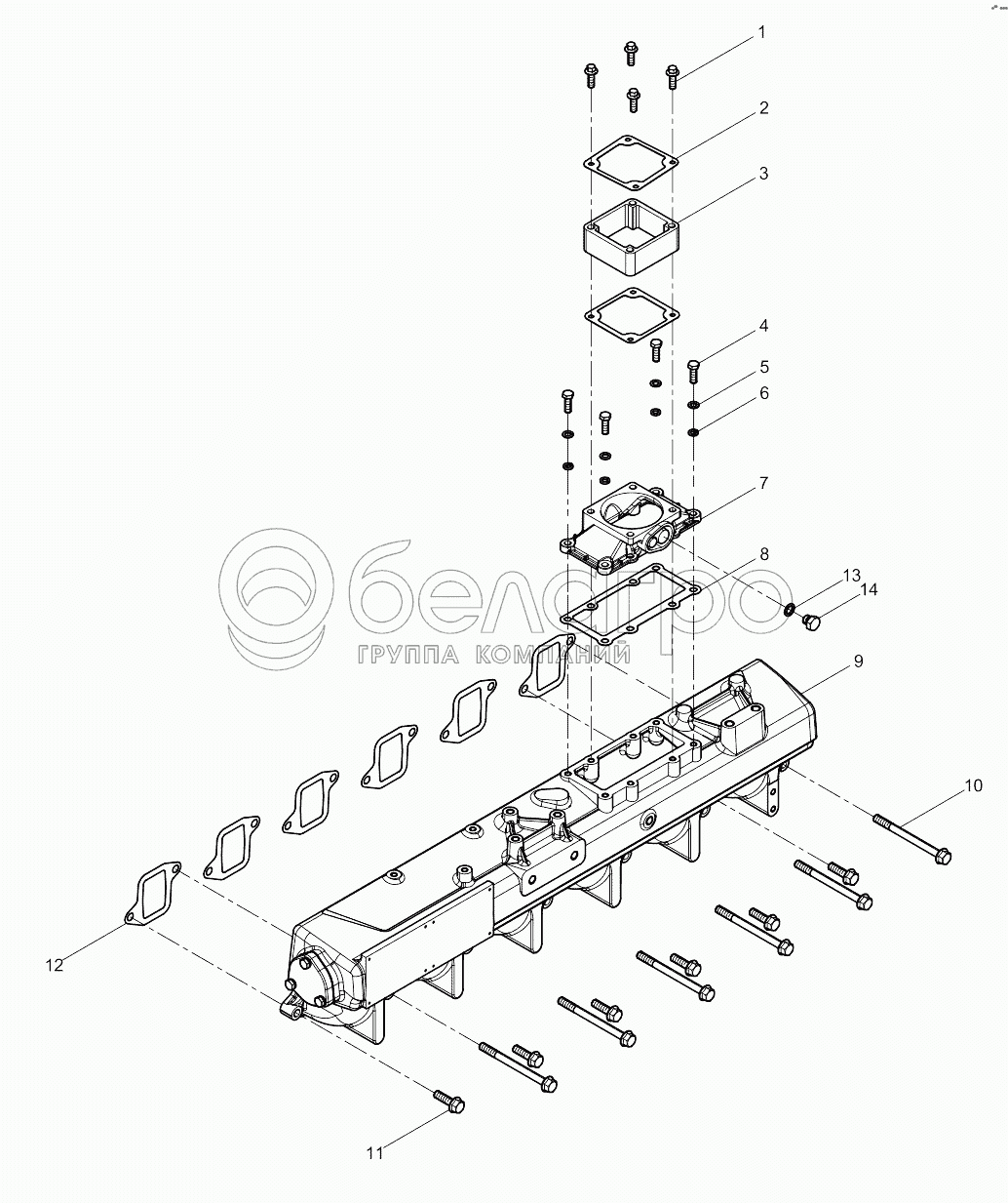 Каталог запасных частей к технике: Weichai 6M11 DHM16D0001. Intake Manifold Group