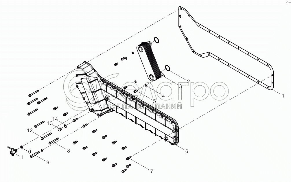 Каталог запасных частей к технике: Weichai 6M11 DHM16D0001. Oil Cooler Group