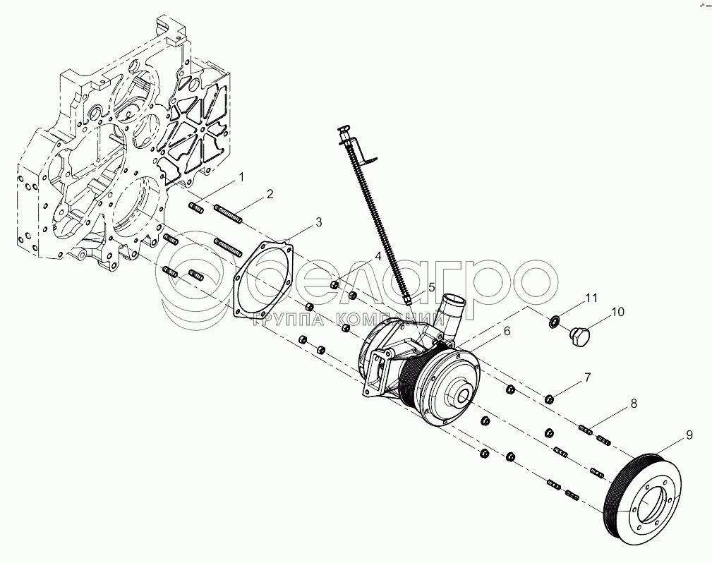 Каталог запасных частей к технике: Weichai 6M11 DHM16D0001. Water Pump Group