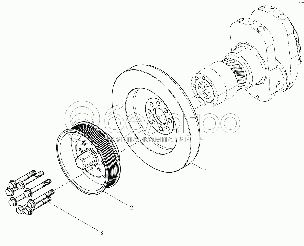 Каталог запасных частей к технике: Weichai 6M11 DHM16D0002. Crankshaft Pulley Group