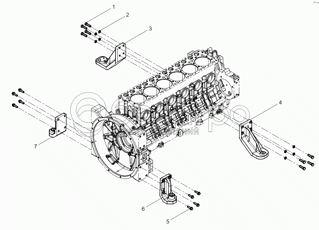 Каталог запасных частей к технике: Weichai 6M11 DHM16D0002. Engine Bracket Group