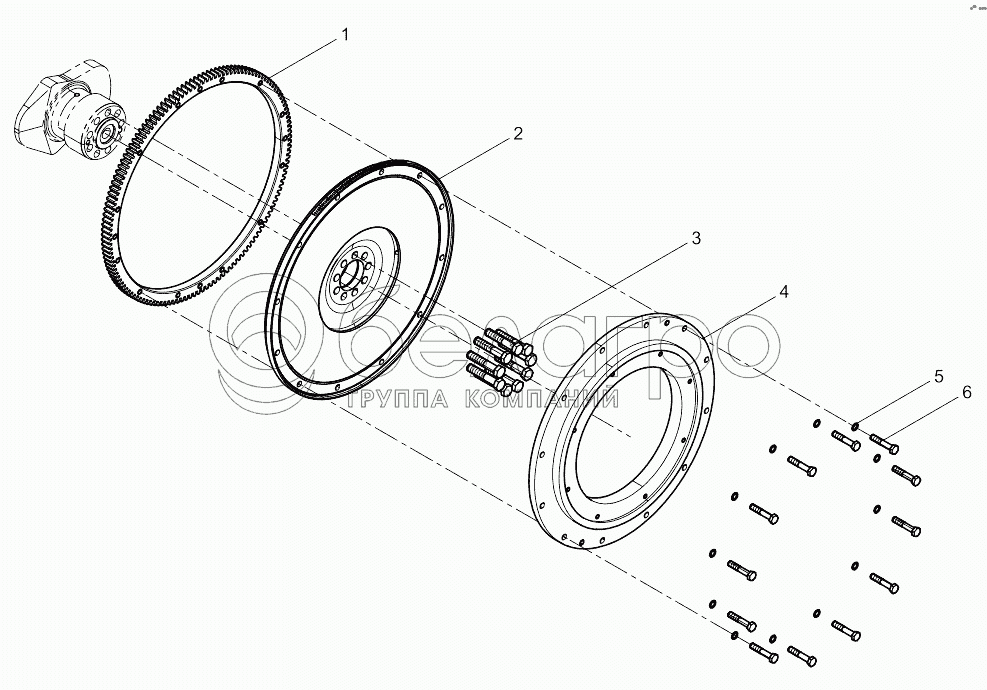 Каталог запасных частей к технике: Weichai 6M11 DHM16D0002. Flywheel Group