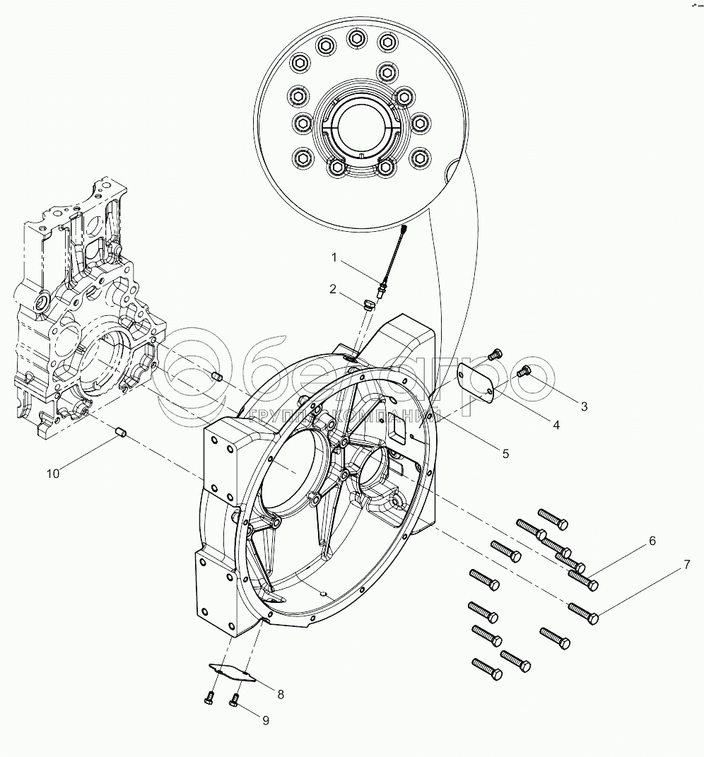 Каталог запасных частей к технике: Weichai 6M11 DHM16D0002. Flywheel Housing Group