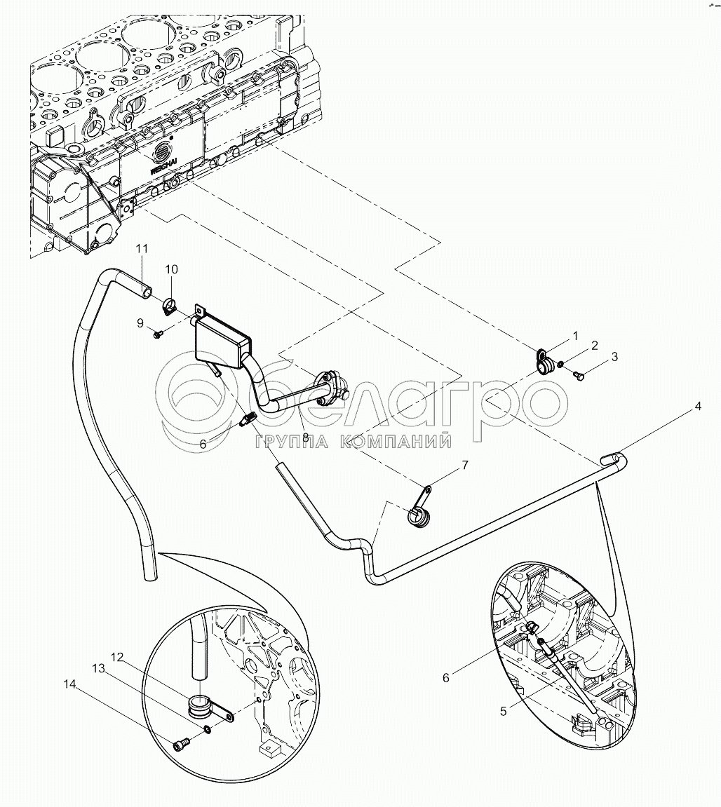 Каталог запасных частей к технике: Weichai 6M11 DHM16D0002. Oil-gas Separator Group