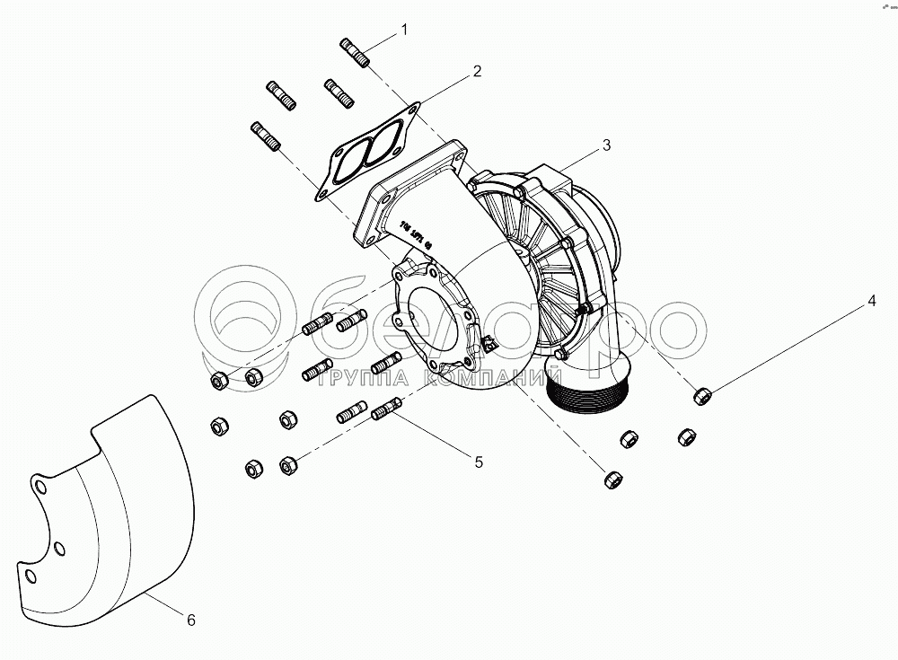 Каталог запасных частей к технике: Weichai 6M11 DHM16D0002. Turbocharger Group