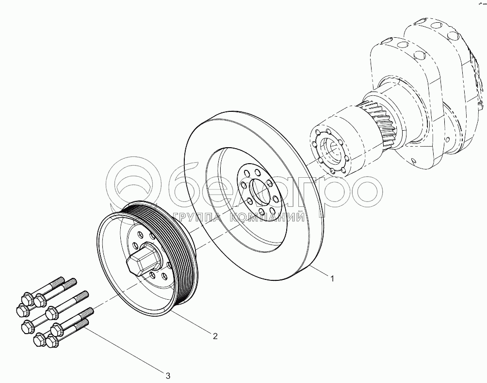 Каталог запасных частей к технике: Weichai 6M11 DHM16D0006. Crankshaft Pulley Group